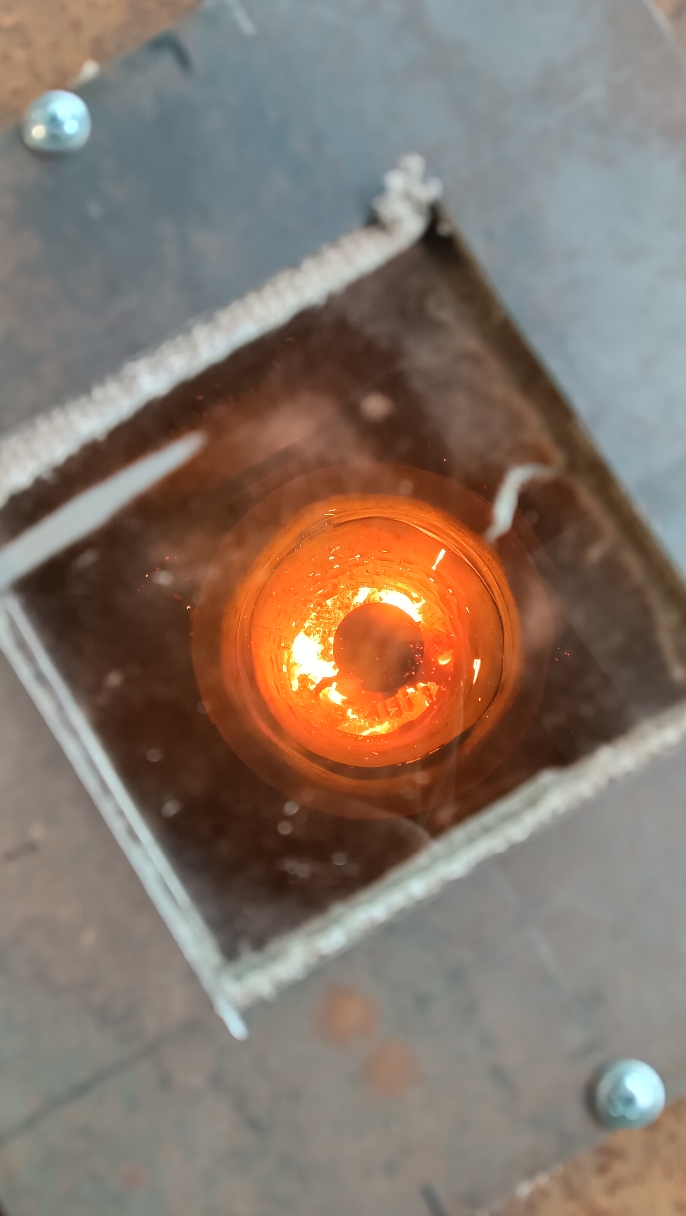 Первый вариант исполнения оголовка всё же не исключал забивание и при значительных температурах процесса в реакторе оргстекло быстро теряло прозрачность. Со временем оголовок шнека был модернизирован и заменен на высокий короб с бОльшим сечением створа, исключающим застревание и уплотнение топлива и имеющий съемную крышку. В крышке также было предусмотрено окошко из обычного стекла, находящиеся строго на оси первичной камеры. Наблюдение за процессом оксипиролиза, визуальный контроль его качества и возможность фото- и видеофиксации значительно упростили проведение экспериментальных исследований.