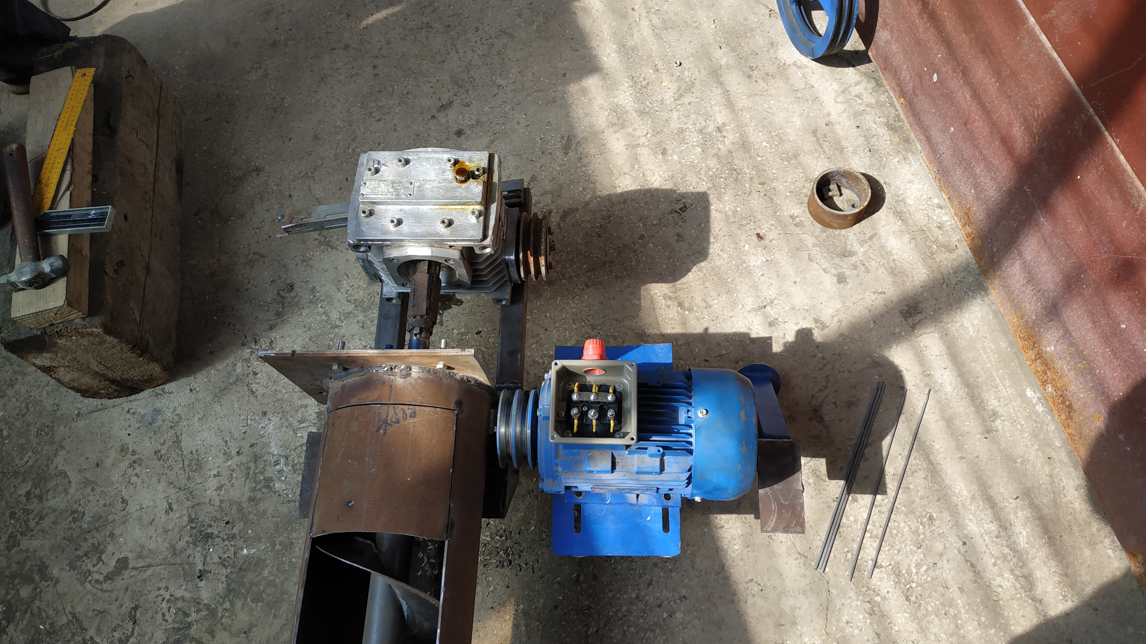 В итоге было принято решение пересмотреть конструкцию и увеличить диаметр шнека вдвое — до 200 мм. Это повлекло за собой ряд сложных конструктивных изменений — в местах сочленения устройства подачи с бункером и реактором. Также было решено в механическую часть устройства добавить редуктор чтобы увеличить момент на валу шнека и при этом удержать производительность подачи в нужных значениях.