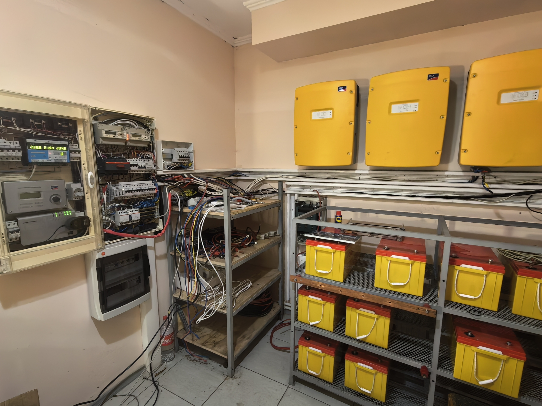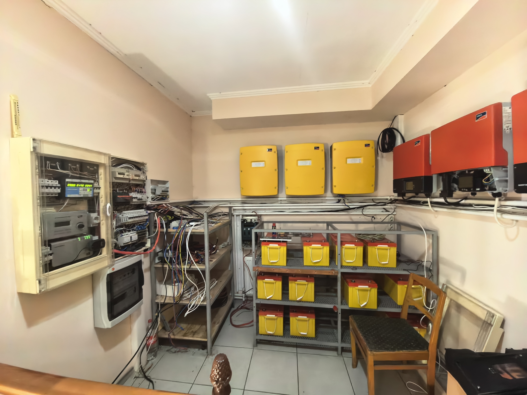 Ранее, с 2014 по 2021 годы эта установка успешно функционировала в гибридном режиме — энергия, полученная от фотоэлектрических панелей потреблялась электрооборудованием здания, а излишек энергии накапливался в аккумуляторах. В случае нехватки энергии от солнечной станции, накопители получали ее из общей сети. В последующие годы внешнее электроснабжение дома заметно улучшилось и необходимость в наличии постоянного резерва стала нерентабельна — содержание станции обходилось дороже, чем эффект от ее работы.